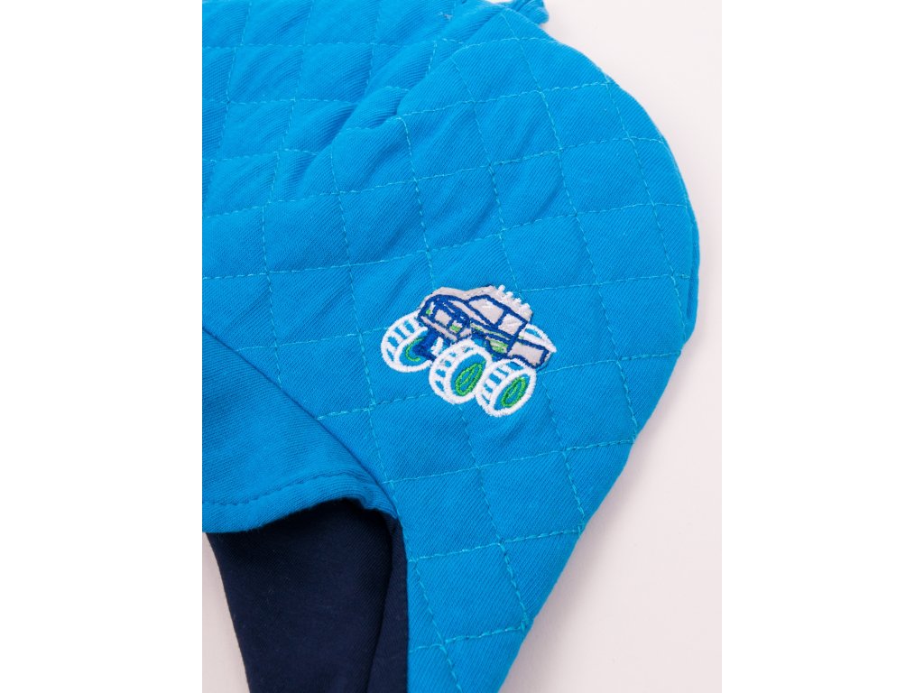 Chlapecká zimní novorozenecká čepice na zavazování pod bradu. Obě vrstvy čepice jsou bavlněné.