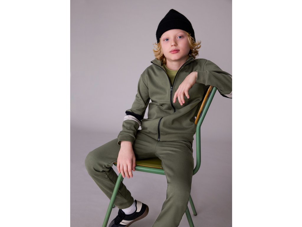 Chlapecká tepláková souprava s mikinou na zip a bez kapuce.