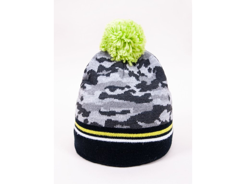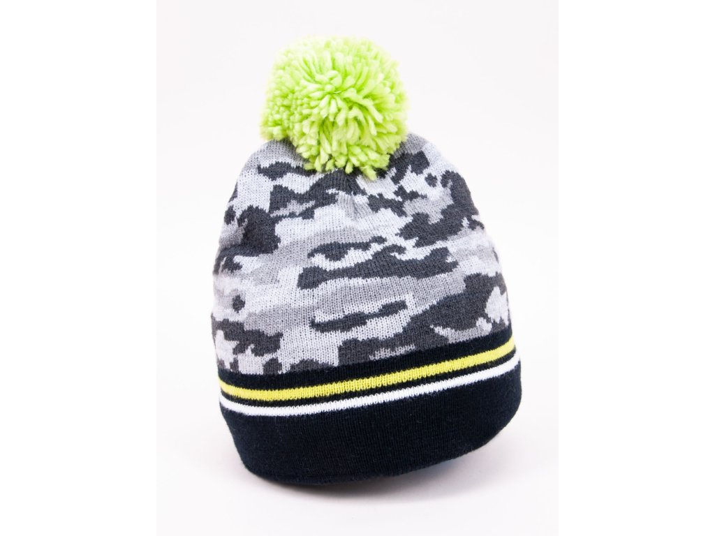 Chlapecká zimní čepice s kontrastní bambulí v módním maskáčovém vzoru. Čepice má bavlněnou podšívku.