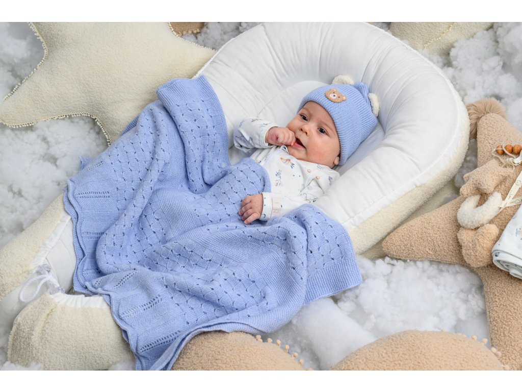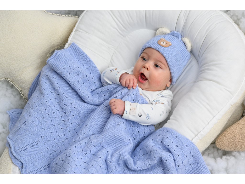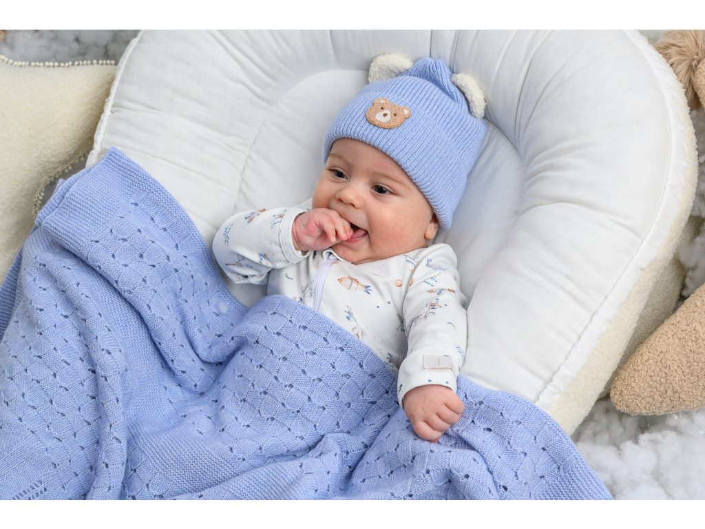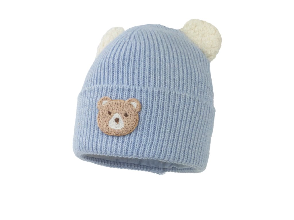 Chlapecká zimní úpletová čepice s oušky a medvídkem.