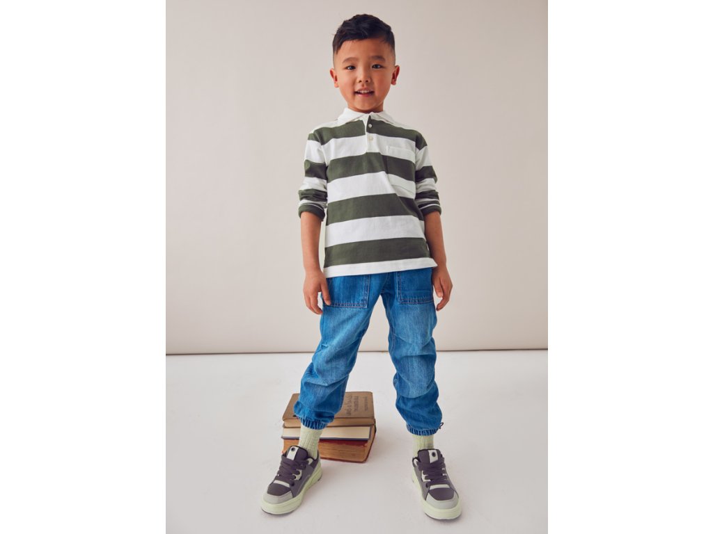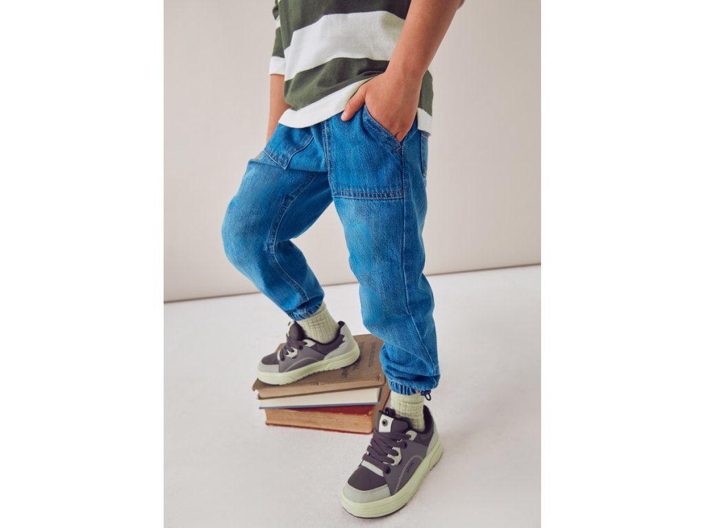 Chlapecké volnější rifle s nařaseným spodním lemem. Stažení v pase mocí gumičky. Měkká riflovina.