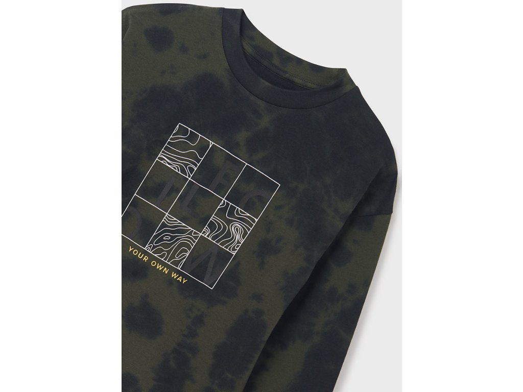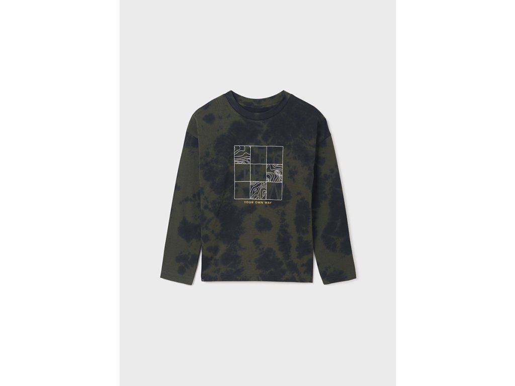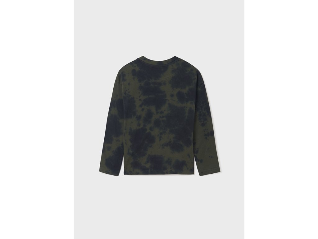 Chlapecké triko s dlouhým rukávem a potiskem v módním batikovaném provedení.