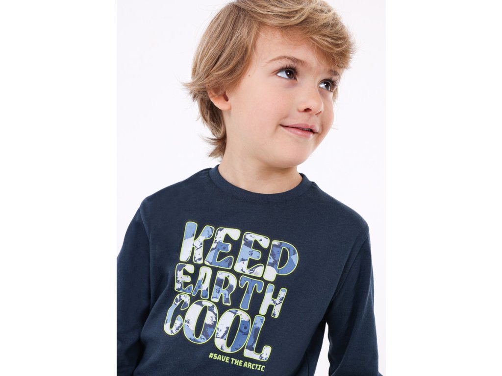 Chlapecké triko s dlouhým rukávem a potiskem na přední straně. Prošití je výraznou nití.
