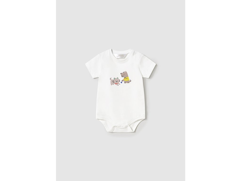 Chlapecký bavlněný 3 dílný set s mikinou na zip a kapucí. Body s krátkým rukávem a tepláky. Vše s veselým potiskem zvířátek.