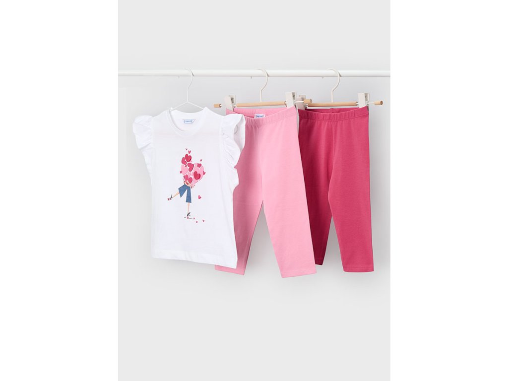 › Mayoral › Malé děti 2 - 10 let › DÍVKA › Sety a teplákové soupravy › Dívčí 3 dílný letní set s 3/4 legíny růžový Mayoral 3729