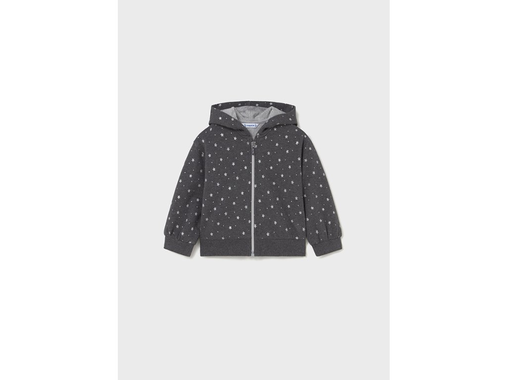 Dívčí teplákový set s mikinou s kapucí a tepláky rovného střihu. Tričko s potiskem a zapínáním na druky na zádech.