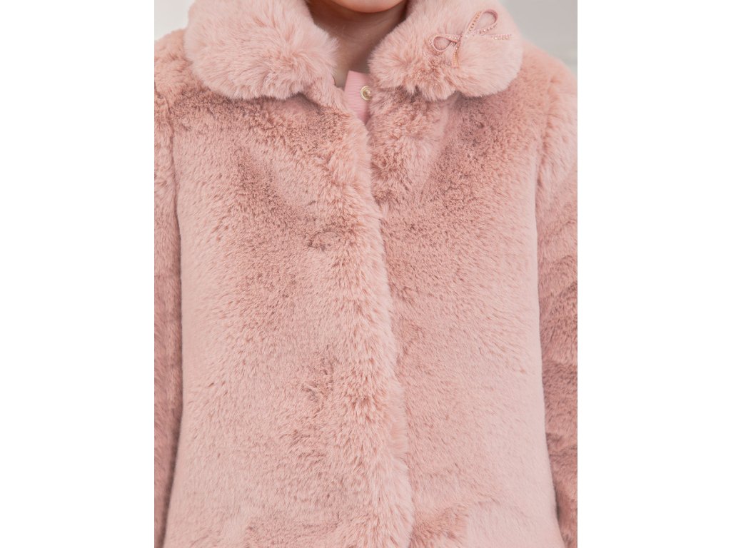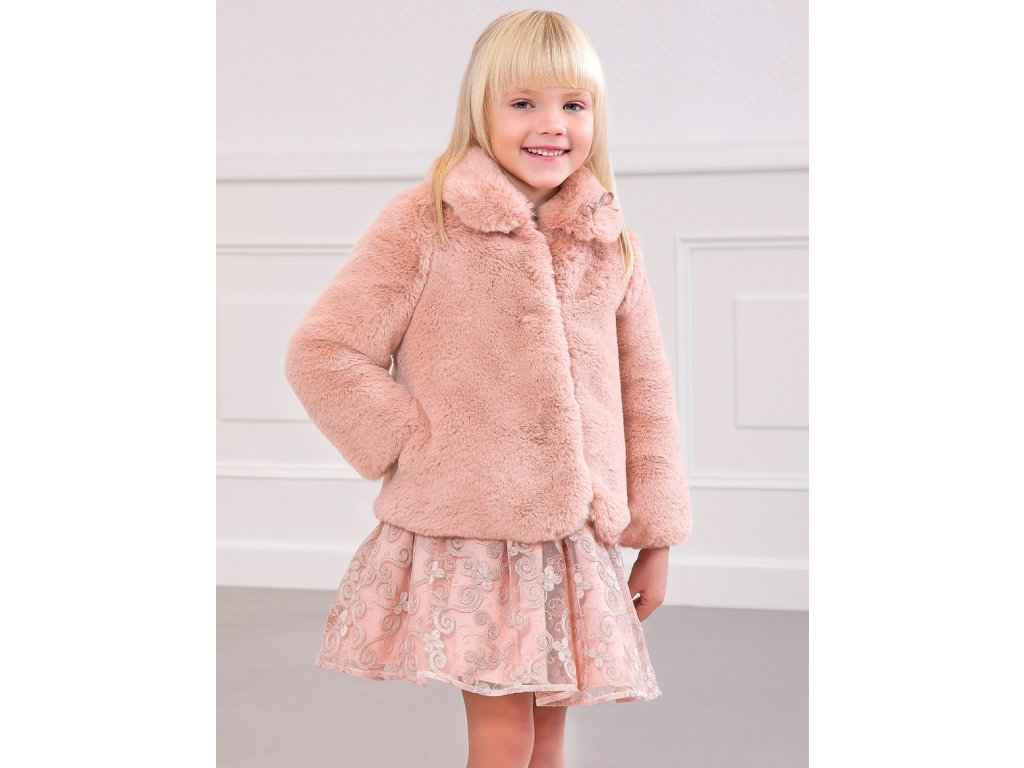 Dívčí zimní kabátek s kožichem ideální ke společenským šatům. Kabát má zapínání pomocí druků a má funkční kapsy.