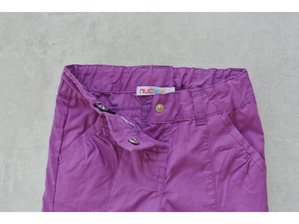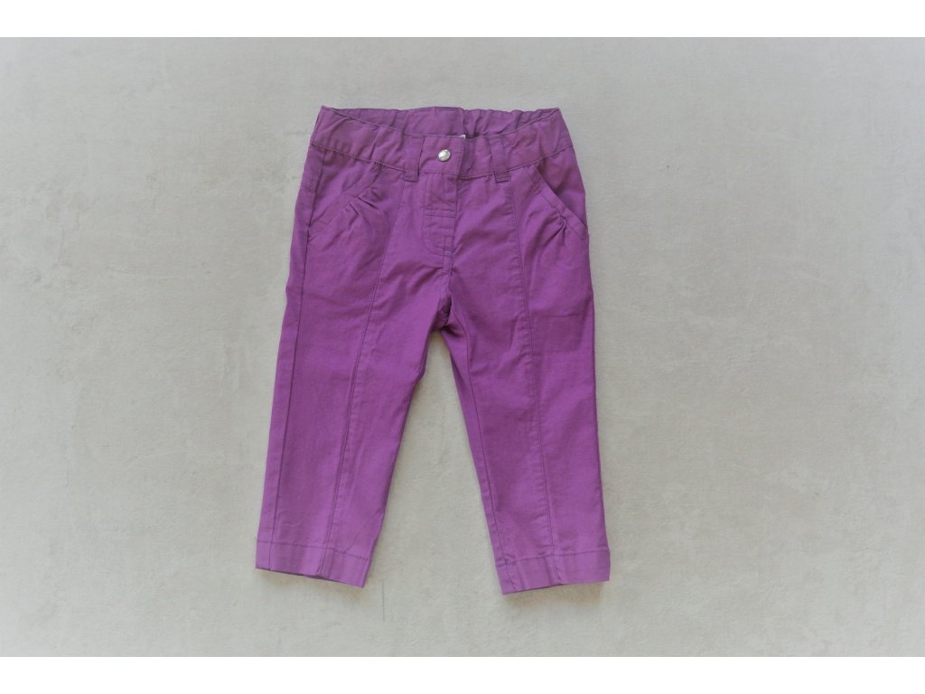 Dívčí letní plátěné kalhoty s nastavitelným pasem. Příjemný tenký materiál vhodný do letních dnů. Kalhoty se zapínají na cvoček.