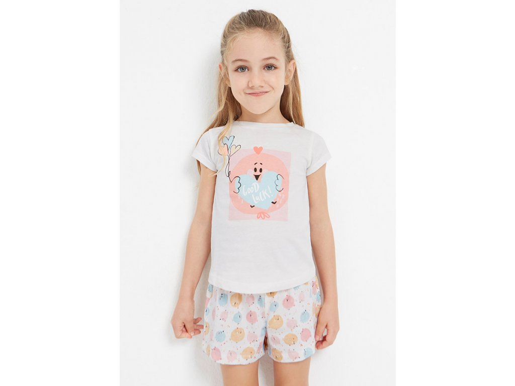 Dívčí letní pyžamo s krátkým rukávem a kraťasy a potiskem.