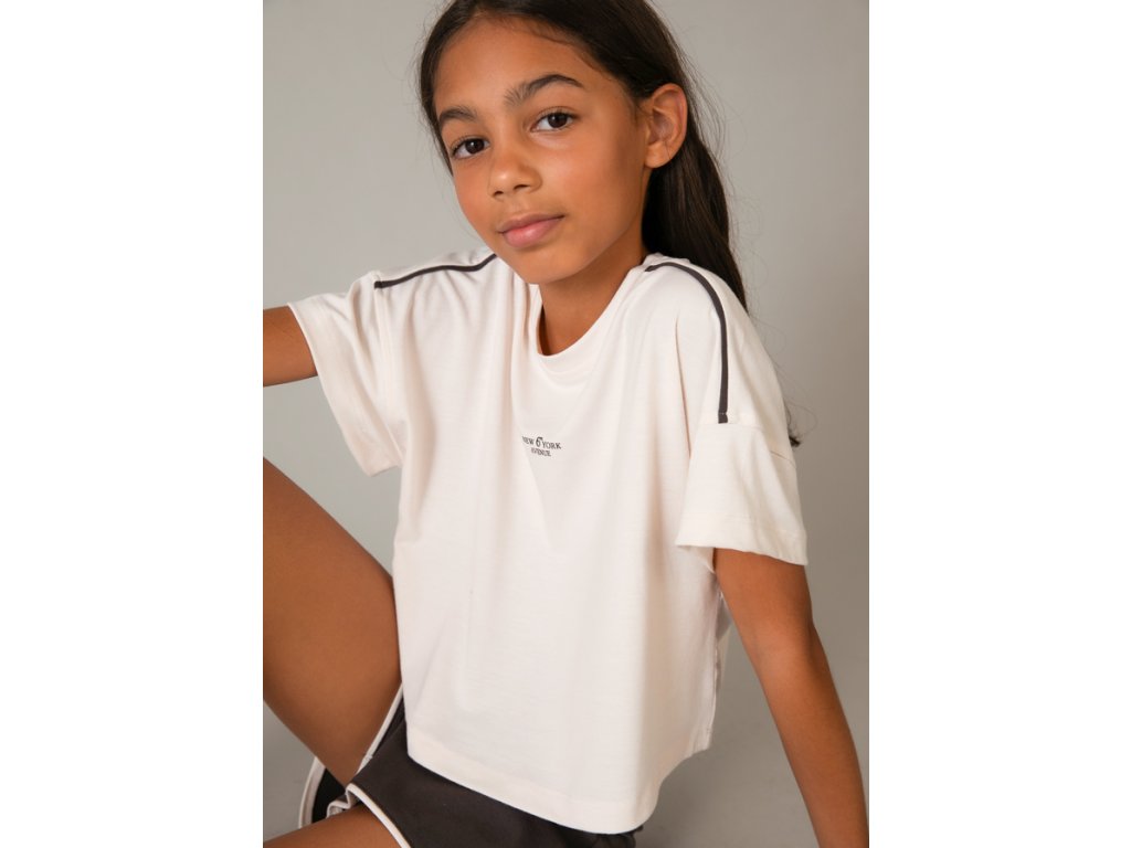 Dívčí letní set volnějšího trika a bavlněných kraťasů.