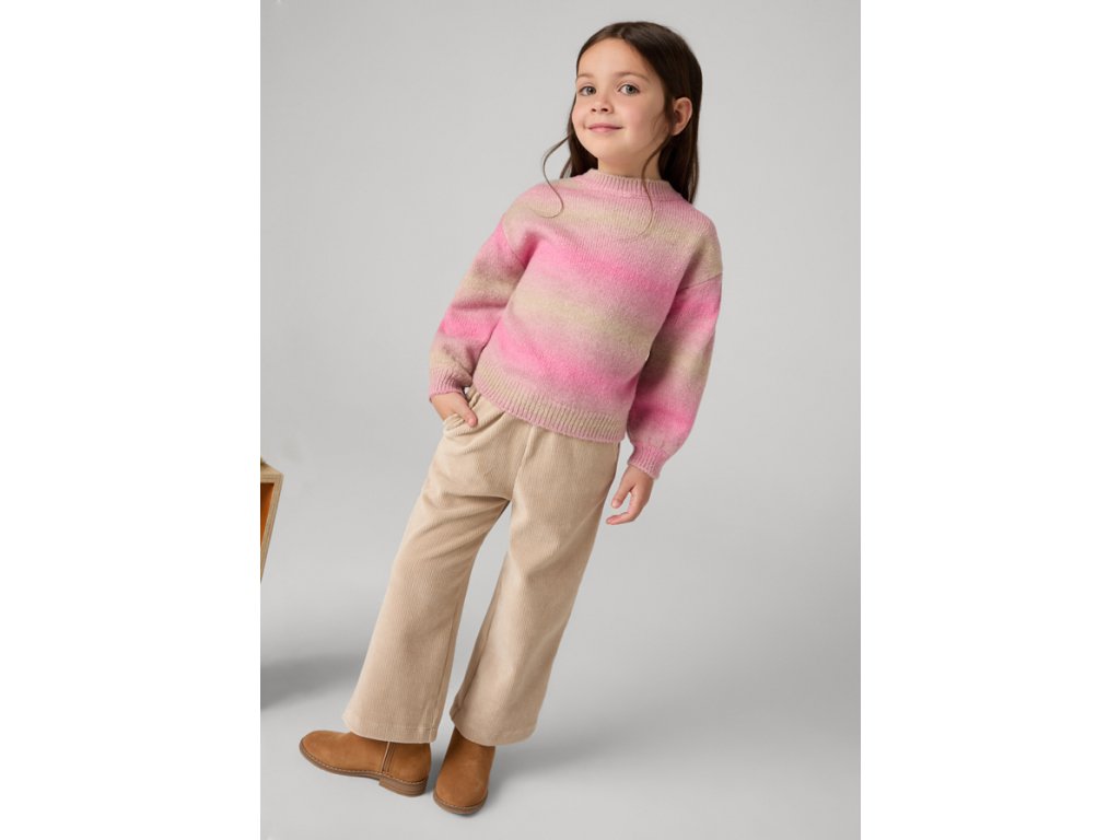Dívčí manšestrové kalhoty volného střihu s nařaseným pasem.
