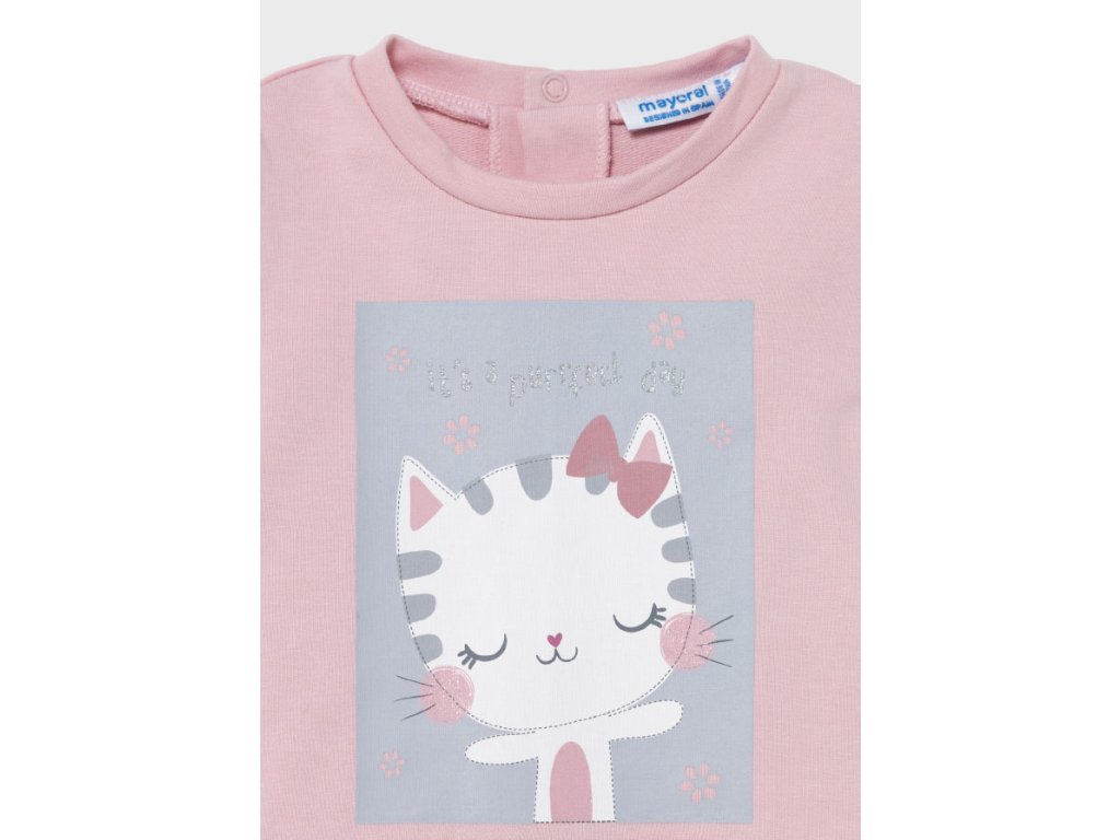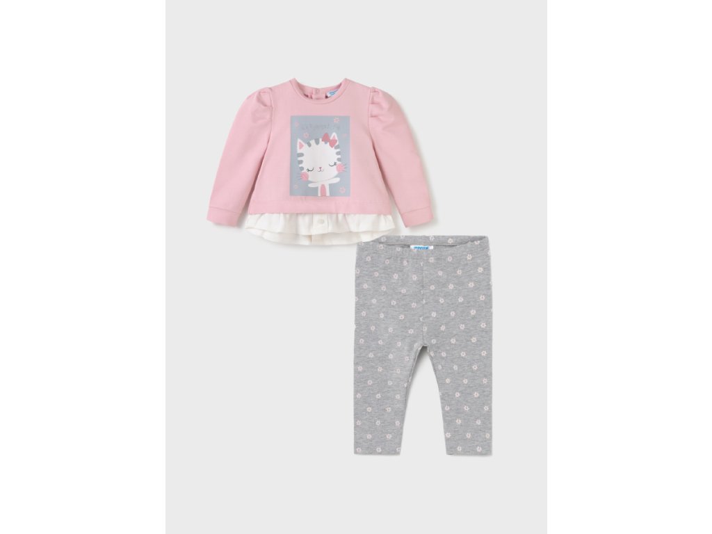 Dívčí set s mikinou a potiskem kočičky vpředu, která má pro snadné oblékání zapínání na dva druky vzadu a legíny.