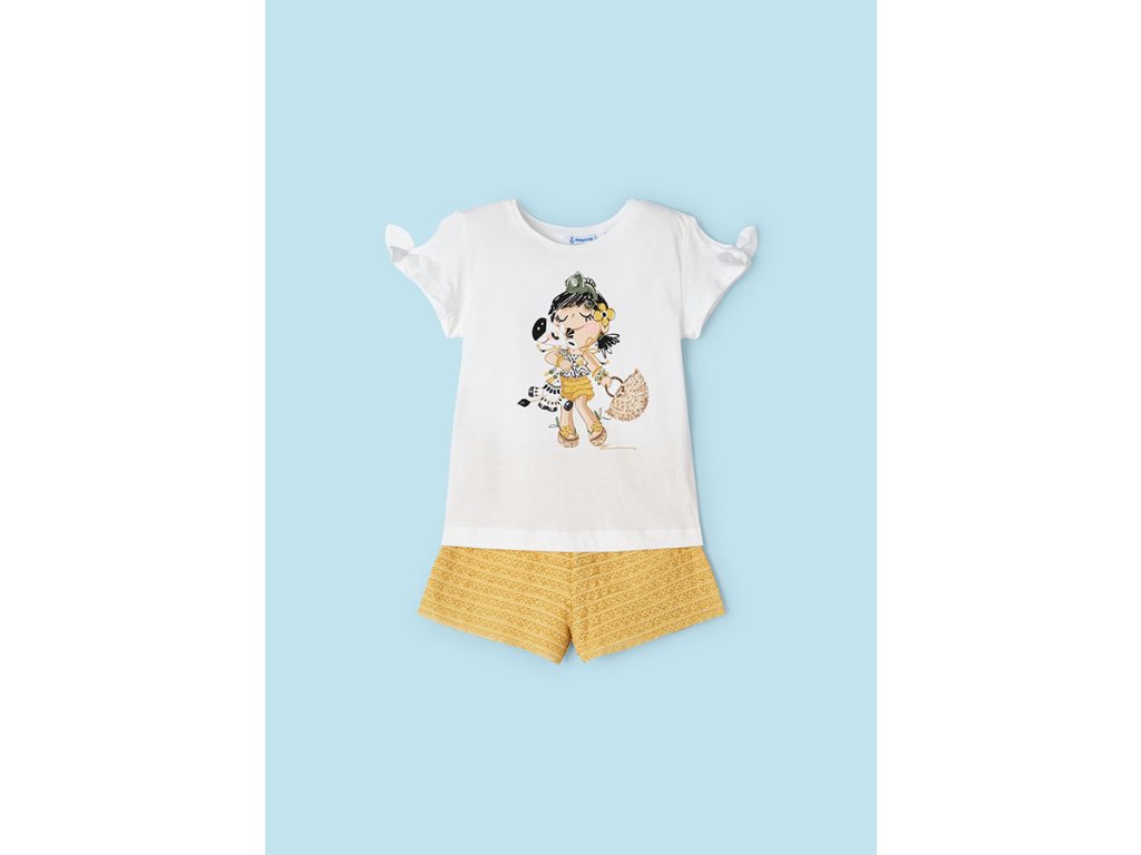 › Mayoral › Malé děti 2 - 10 let › DÍVKA › Sety a teplákové soupravy › Dívčí set trika s krátkým rukávem a krajkových kraťasů Mayoral 3266