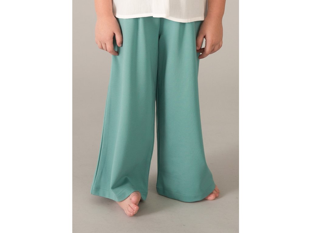Dívčí široké kalhoty s příjemného, měkkého materiálu. V pase do gumy.