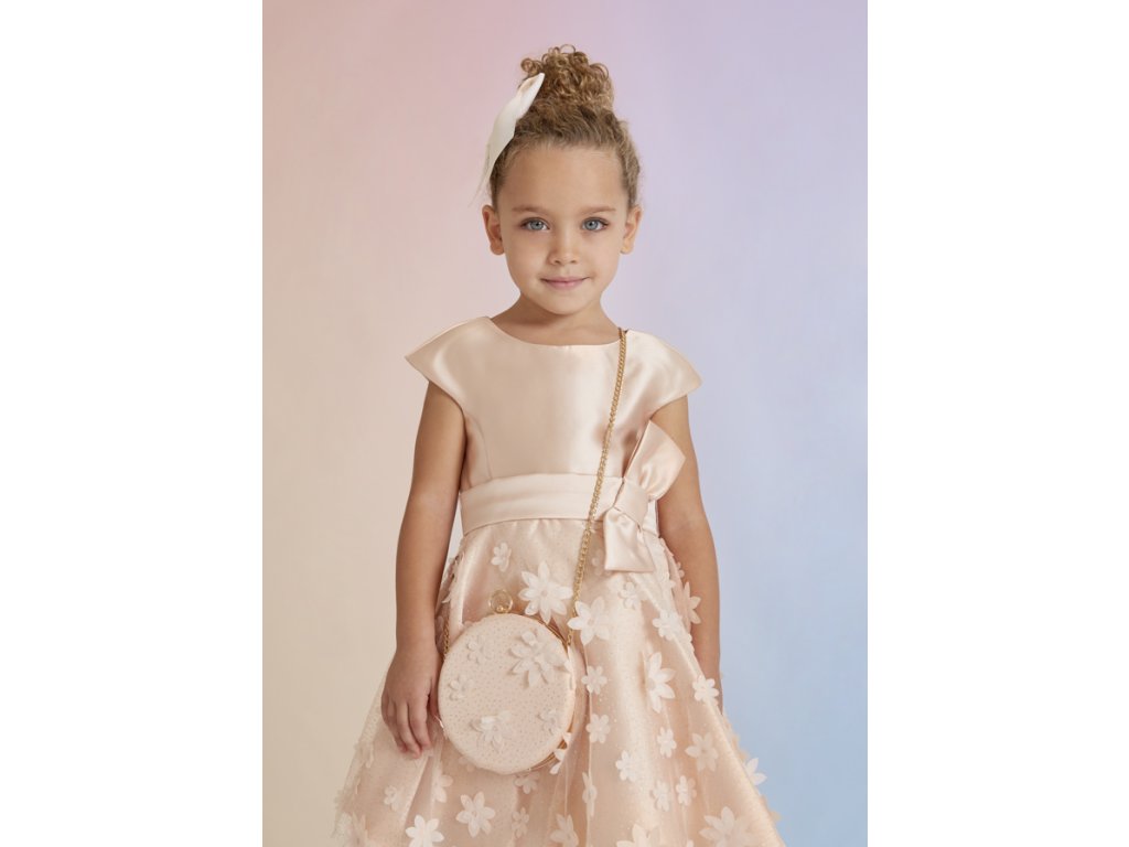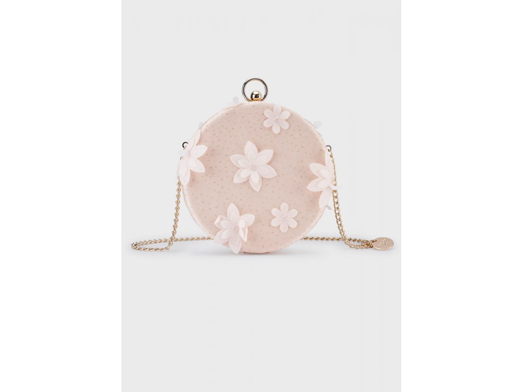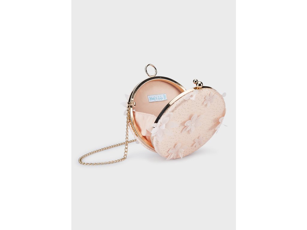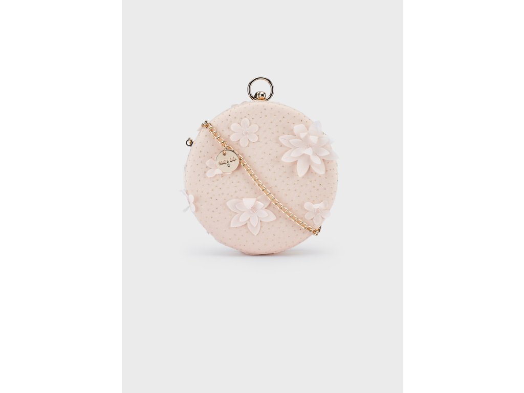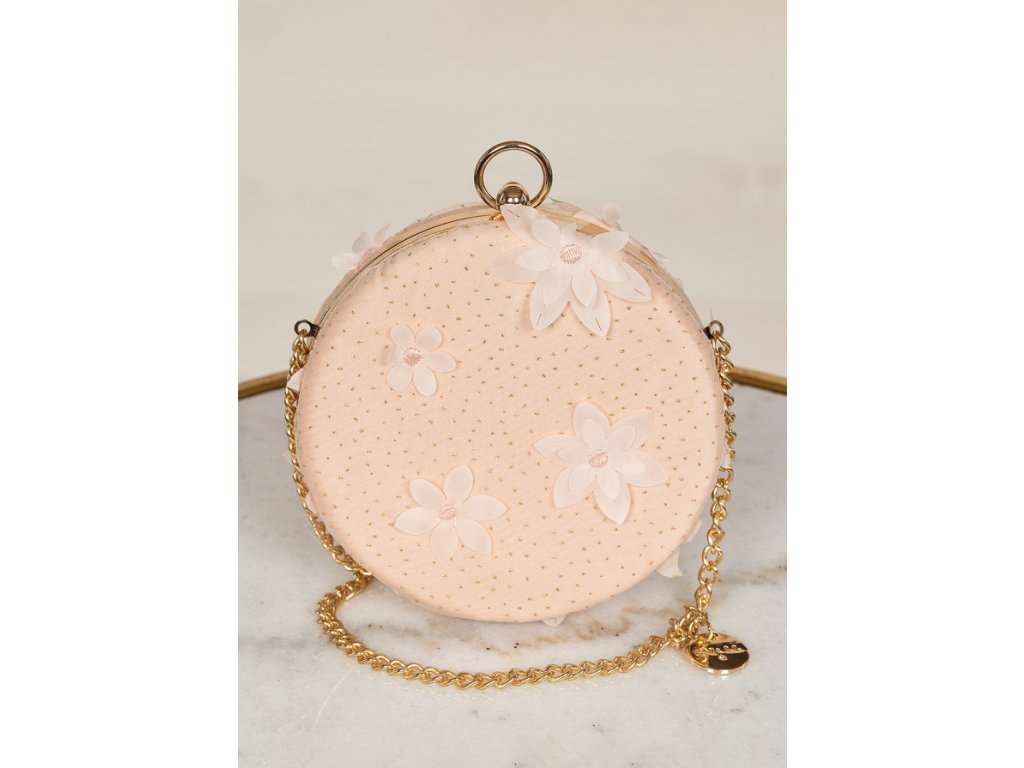 Dívčí krásná elegantní kabelka přes rameno s tylem a květinami. Řetízkový popruh přes rameno. Praktický a zábavný doplněk, který skvěle doplní jakýkoli styling.