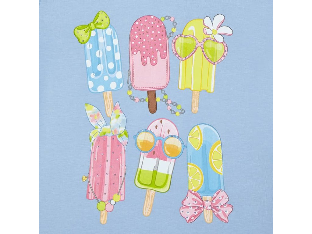 Dívčí letní triko s krátkým rukávem a potiskem zmrzlin s kamínky.