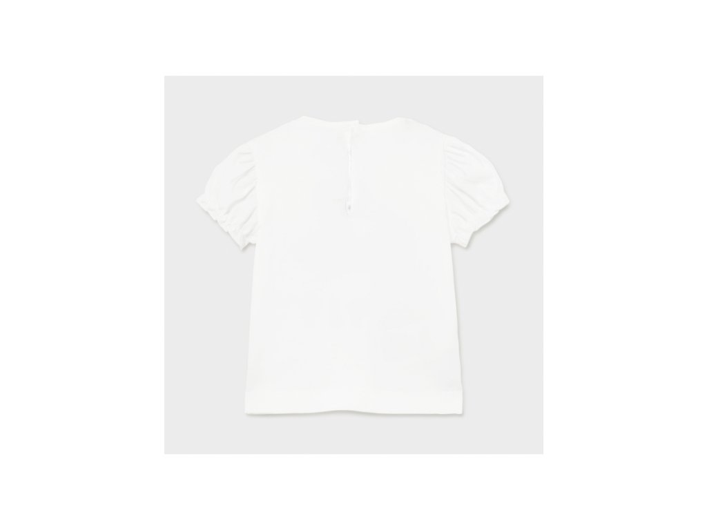 Dívčí triko s krátkým rukávem se zapínáním na zádech na dva druky. Tričko má krásné balónové rukávy, které jsou z jemného plátna.