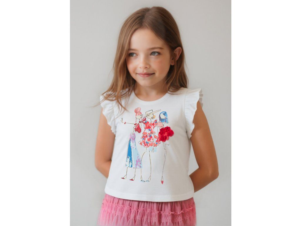 Dívčí triko s volánkovým rukávem a potiskem.