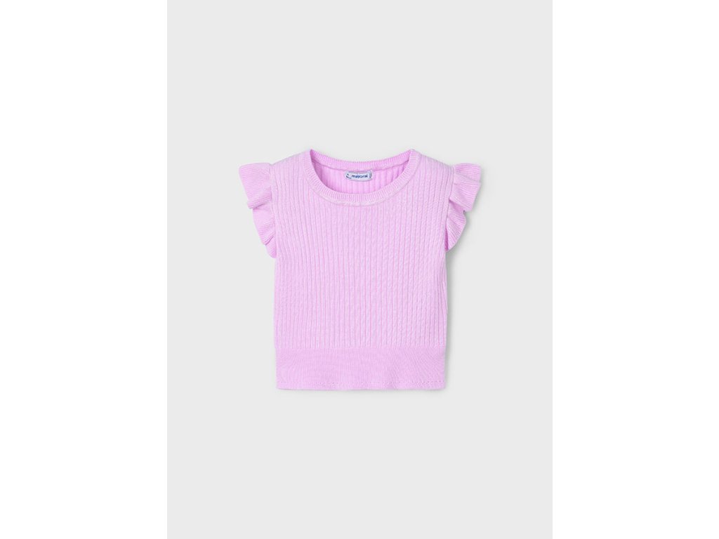 Dívčí úpletové triko s jemným volánkem kolem rukávů.