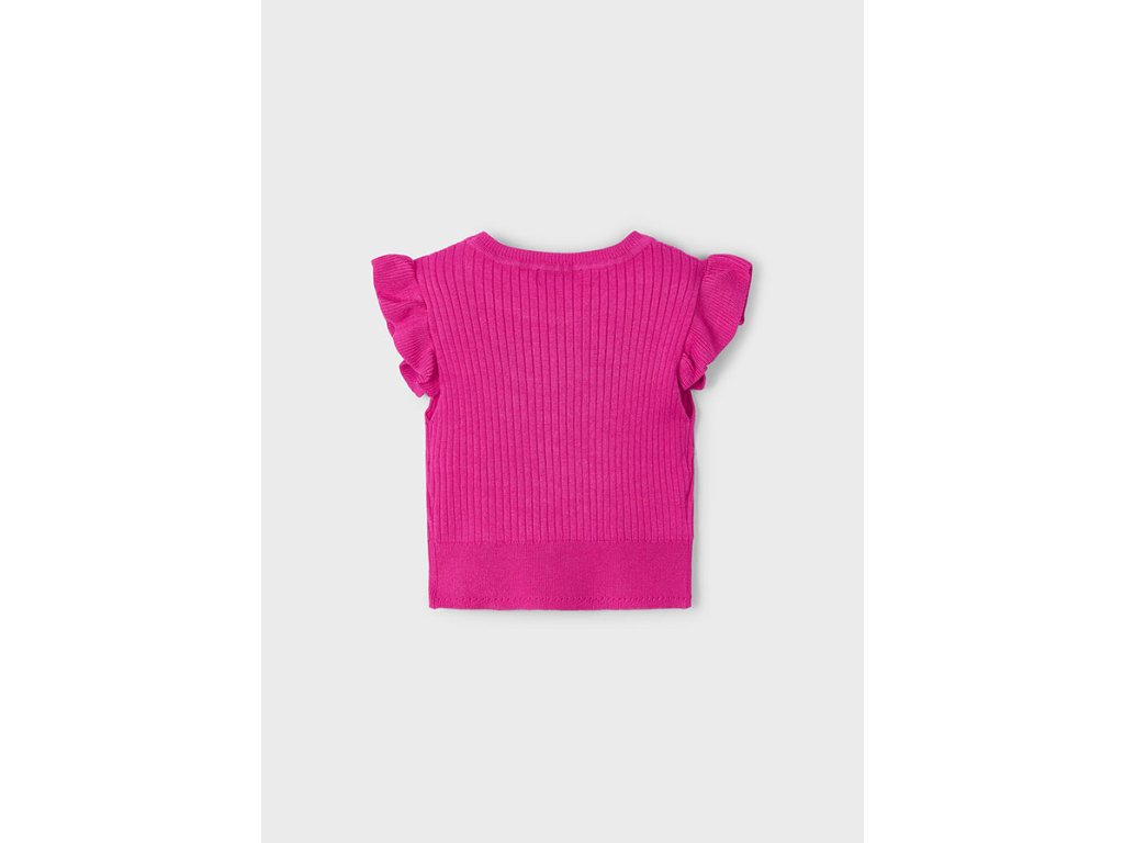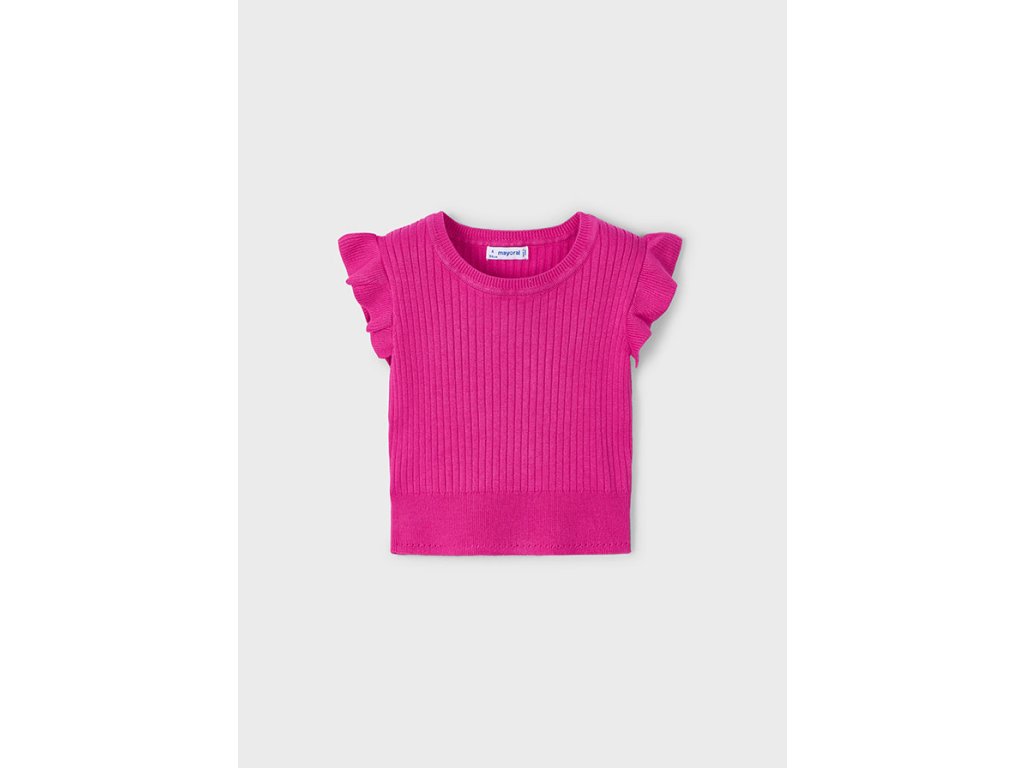 Dívčí úpletové triko s jemným volánkem kolem rukávů.